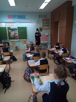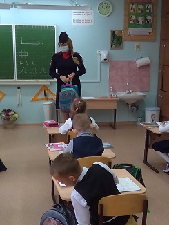 7.09.2020г. в школе у первоклассников побывали инспектора ГИБДД. Они повторили с малышами правила ДД, напомнили про светоотражатели и показали фильм по ПДД.
